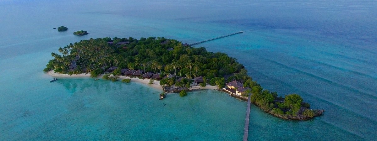 Ein paradiesischer Ort für abenteuerlustige Taucher, Ruhesuchende und Naturliebhaber. Das Herz der Insel besteht aus ursprünglicher Vegetation und den faszinierenden Korallensteinskulpturen. Der Holzsteg auf der Insel verbindet die Bungalows mit dem Restaurant & Tauchbereich